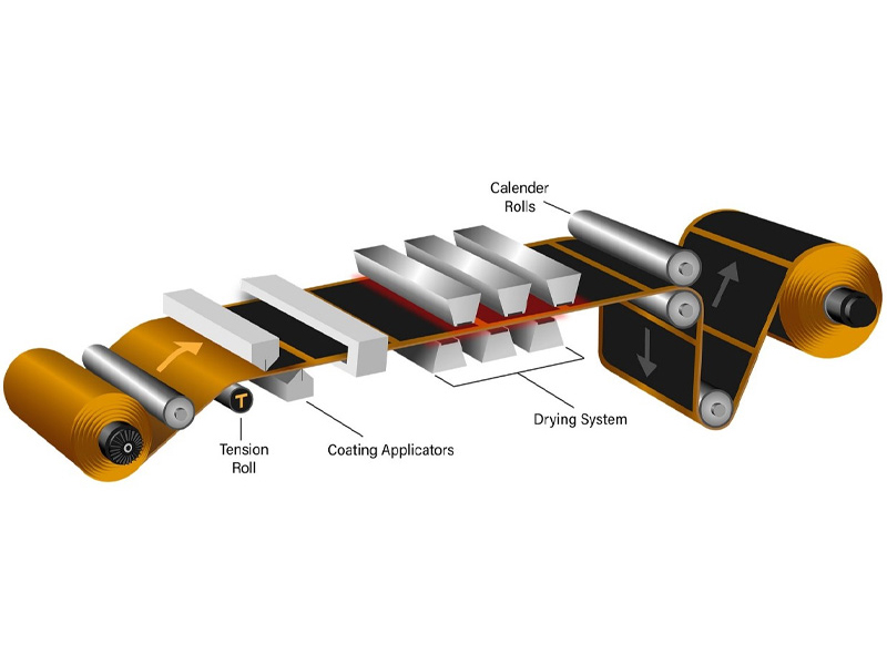 在电池电极制造中可以采用各种工艺,包括涂层、干燥、压延、检查和分切。在电池结构中,电极由涂有专有化学混合物的箔基板组成。正极(阳极)使用铝箔,而负极(阴极)使用铜箔。涂层过程中所用材料的成分会影响电池的性