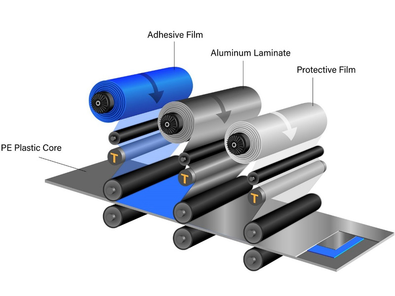 在三层复合材料的制造中,可以采用各种工艺,包括聚合物挤出,蜂窝成型, 粘合剂涂层和层压。精确的张力控制对于确保粘合剂、表皮和芯材成功结合在一起并保持均匀性非常重要。